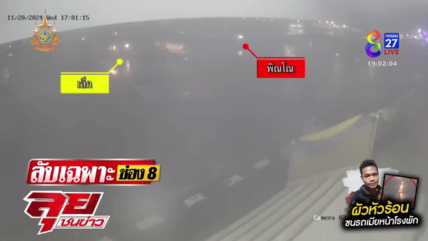 Camera an ninh trước đồn cảnh sát đã ghi lại được toàn bộ diễn biến của vụ tông xe đáng sợ này. Đến ngày thứ Ba, 3/12 vừa qua, Pinno Sisooksai đã bị bắt giữ tại nhà riêng của anh ta ở Krabi và bị buộc tội âm mưu giết người.