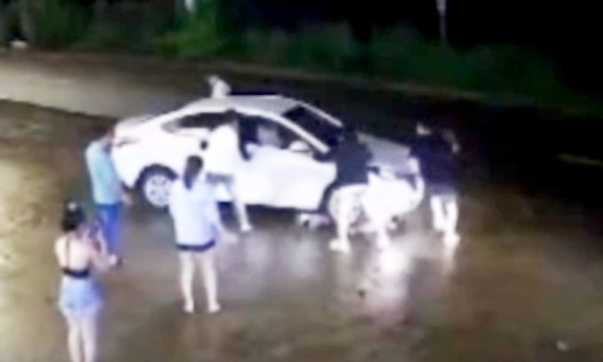 Theo điều tra ban đầu, khuya hôm qua, trước quán karaoke ở xã Bình Trung, huyện Châu Đức, người đàn ông ngồi ở ghế lái ôtô 4 chỗ, bị 3 thanh niên đứng bên ngoài lớn tiếng la hét, có hành vi muốn tấn công. Lúc này, một cô gái xông vào can ngăn, nhưng được người khác ngăn cản, kéo ra ngoài.