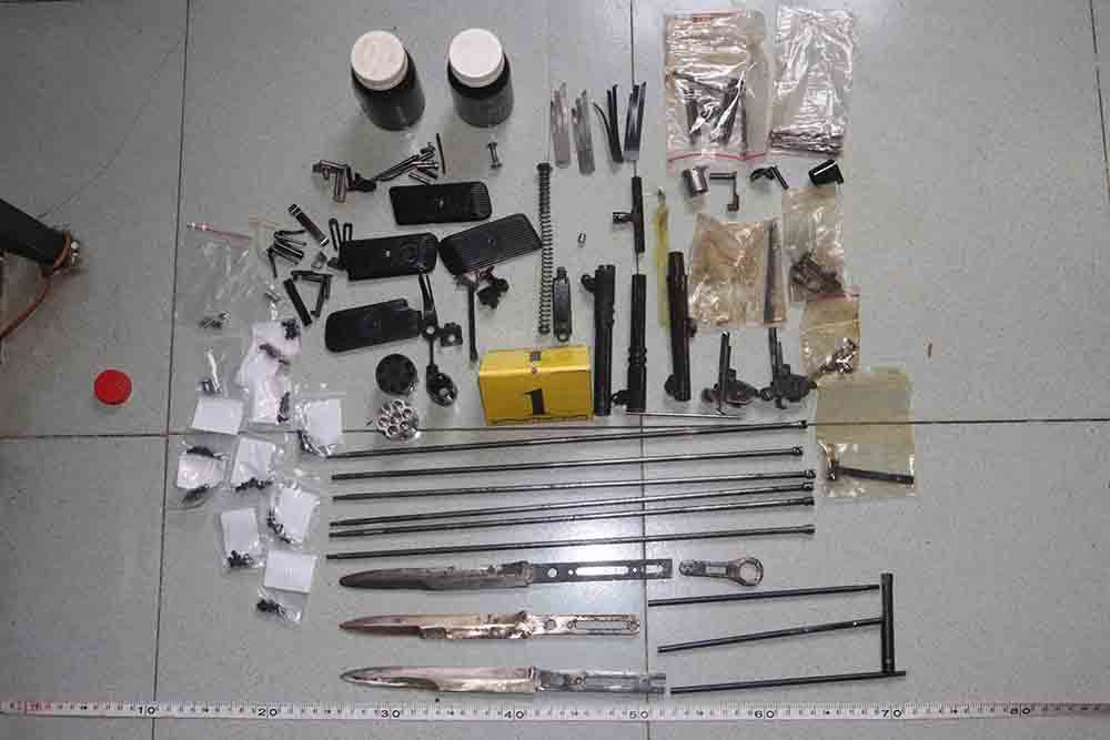 Công an thu giữ lượng tang vật gồm: 4 quả lựu đạn, gần 100 khẩu súng, 9.000 viên đạn các loại, hàng ngàn linh kiện vũ khí, công cụ hỗ trợ, vũ khí thô sơ và nhiều tang vật khác có liên quan.