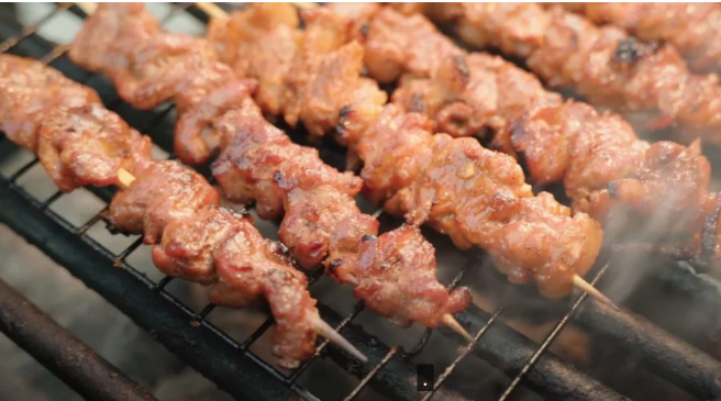 Thịt nướng ngon nhất là sử dụng than hoa.
