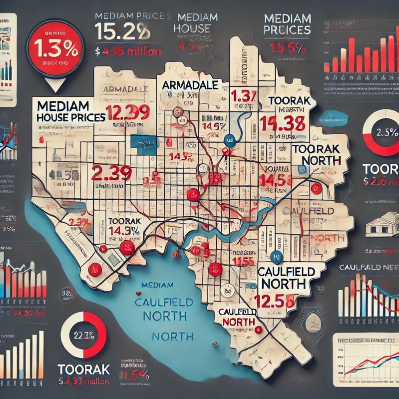 Armadale dẫn đầu xu hướng giảm trong nhóm các khu vực có giá nhà trung bình trên 2 triệu AUD, với giá trung bình giảm 15,8%, còn 2,29 triệu AUD trong 12 tháng qua, theo dữ liệu từ Domain cho quý tháng Chín. Theo sau là Toorak, khu vực xa hoa của Melbourne, nơi giá nhà giảm 14,3% xuống còn 4,5 triệu AUD. Khu vực Caulfield North cũng ghi nhận mức giảm 12,5%.
