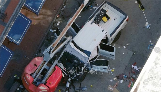 Hiện trường vụ lao xe vào đám đông tại thành phố New Orleans, bang Louisiana, Mỹ ngày 1/1/2025.