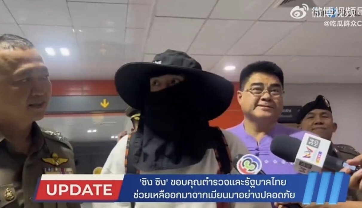 Vương Tinh bịt kín mặt khi trả lời truyền thông Thái Lan