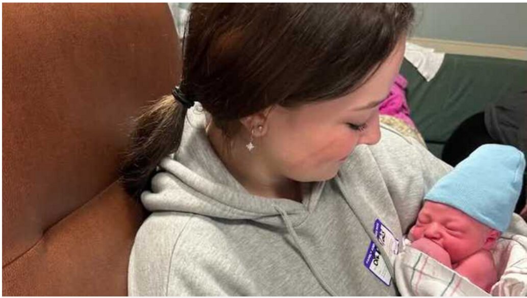 Kiyah bế em trai mình vào ngày cậu nhóc chào đời.