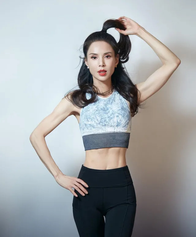 Cô tập yoga hàng chục năm nay, đồng thời thích gập bụng, tập gym. Có những ngày, cô gập bụng đến 600 cái để vòng 2 luôn săn chắc.