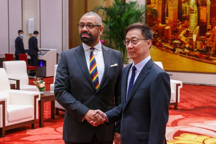 Ông Hàn Chính tiếp Bộ trưởng Ngoại giao Anh James Cleverly. Ảnh: UK Gov.