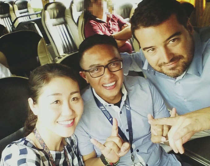 Chị Tiên chụp cùng đồng nghiệp trong chuyến công tác tại Singapore năm 2015. Ảnh: NVCC