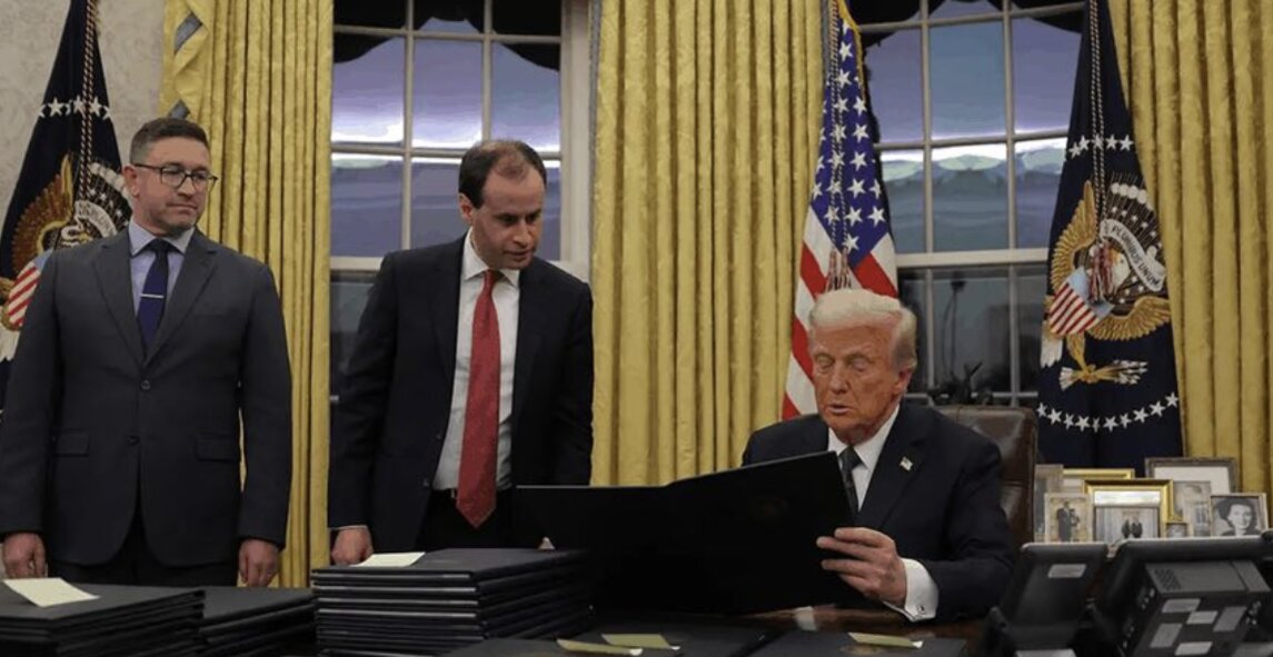 Ông Trump ký nhiều sắc lệnh hành pháp trong ngày đầu nhậm chức. Ảnh Reuters