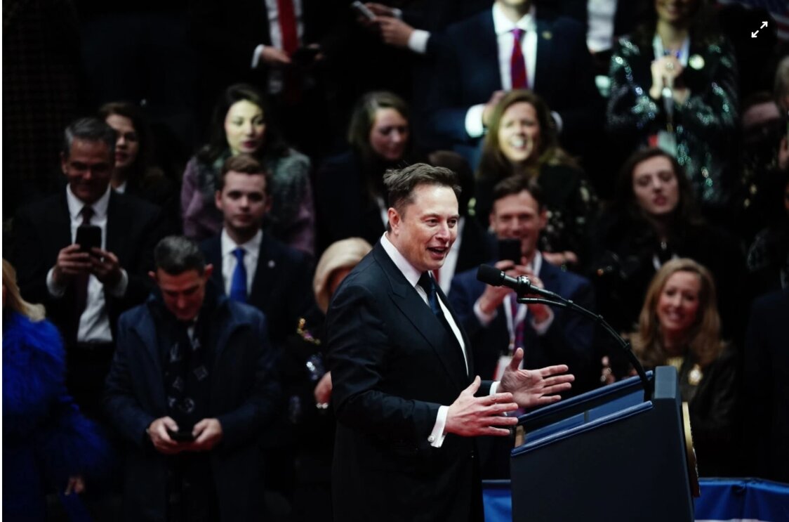 Elon Musk phát biểu tại lễ nhậm chức của Tổng thống Donald Trump. Ảnh: New York Times.