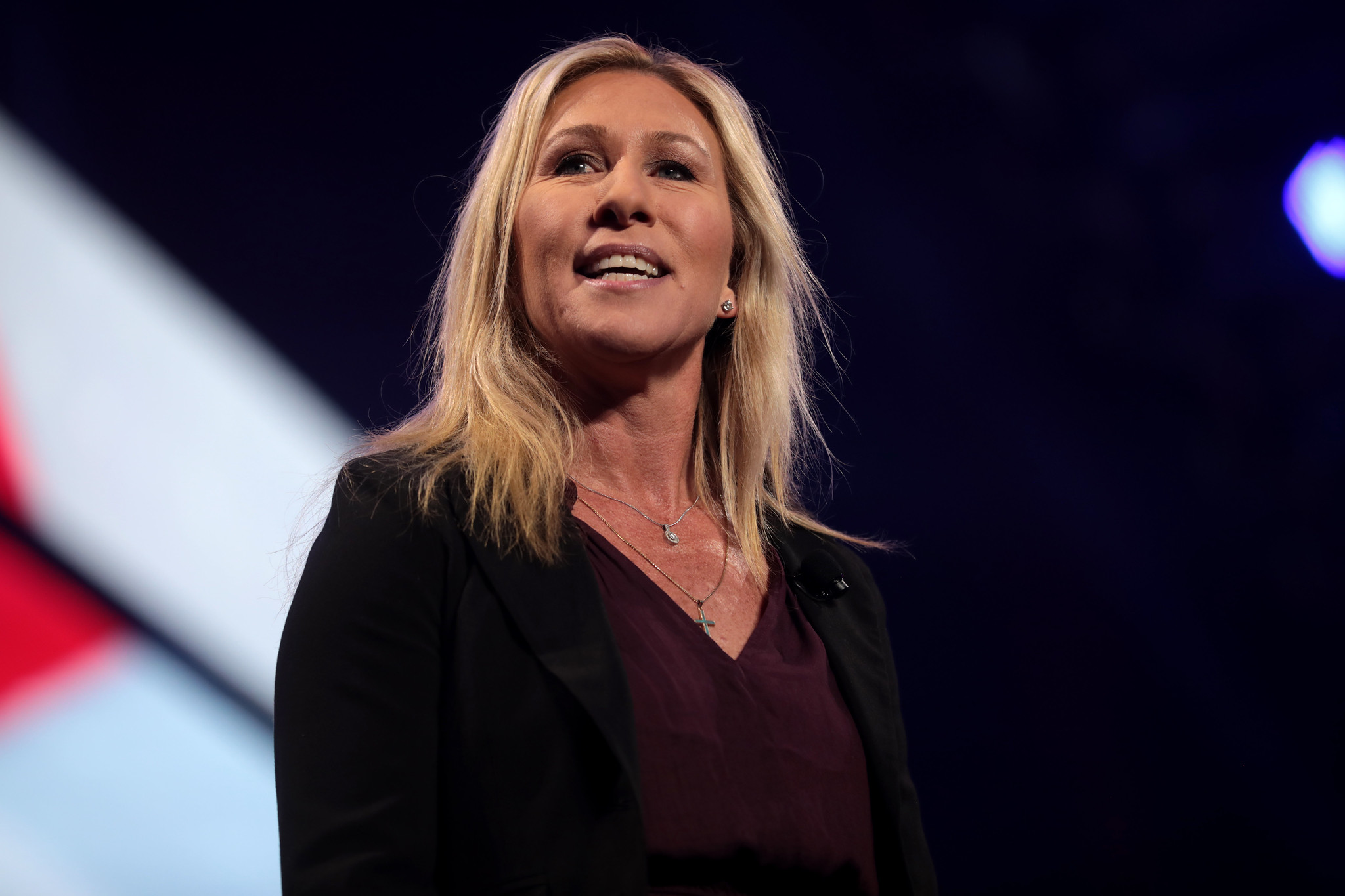 Nữ dân biểu Hoa Kỳ Marjorie Taylor Greene phát biểu với những người tham dự AmericaFest 2021 tại Trung tâm Hội nghị Phoenix ở Phoenix, Arizona. (Nguồn: Gage Skidmore/Flickr)