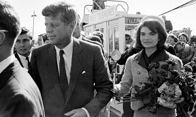 Tổng thống John F. Kennedy và đệ nhất phu nhân Jacqueline được đám đông chào đón khi đến sân vận động Dallas Love Field ngày 22/11/1963. Ảnh: AP