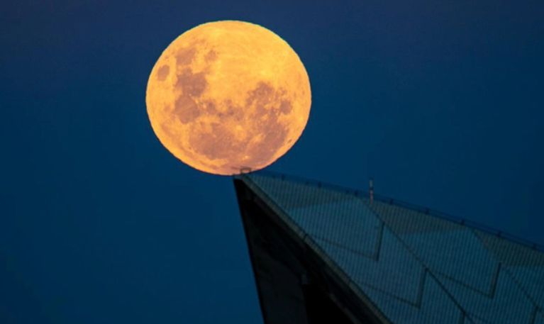 Trăng máu mọc trên một trong các đỉnh của mái Nhà hát Opera Sydney (Úc) - Ảnh: TÂN HOA XÃ