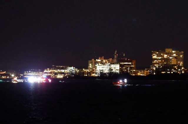 Đèn từ xe cứu thương và thuyền gần sân bay quốc gia Ronald Reagan sau vụ tai nạn máy bay vào tối 29.1