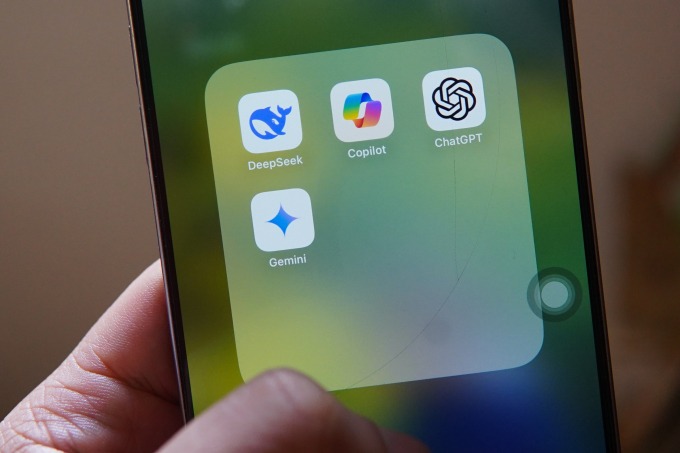 Logo các ứng dụng AI DeepSeek, Copilot, ChaGPT, Gemini trên điện thoại. Ảnh: Lưu Quư