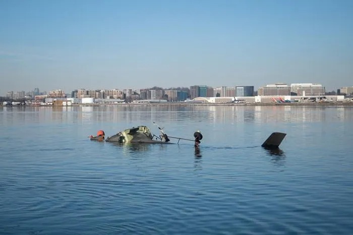 Xác chiếc trực thăng trên sông Potomac. Ảnh: X