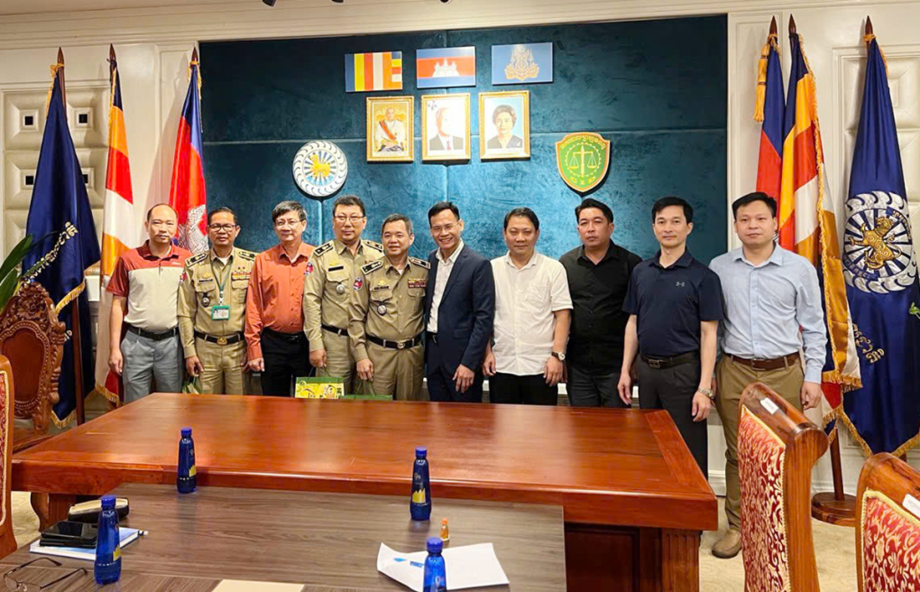 Đoàn công tác của C02 làm việc với cảnh sát Campuchia để phối hợp điều tra. Ảnh: Công an cung cấp