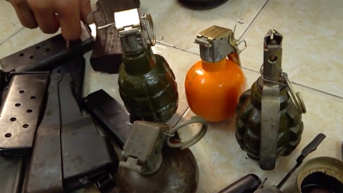 Lựu đạn trong lô vũ khí bị cảnh sát thu giữ. Ảnh: Công an cung cấp