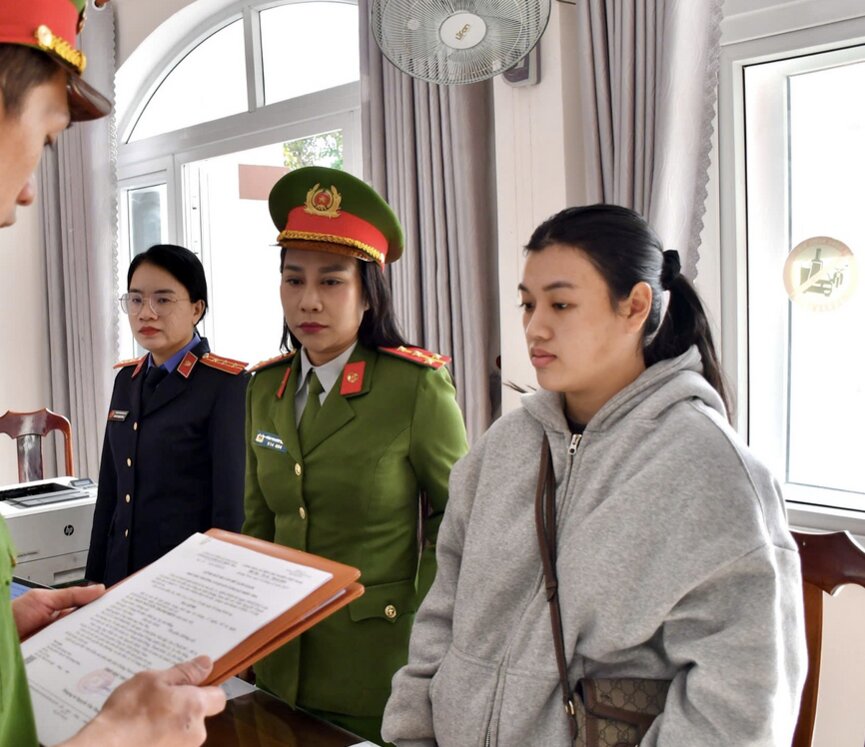 Công an thực hiện lệnh khởi tố, bắt tạm giam với đối tượng Trần Nguyễn Thanh Hiền - Ảnh: CA Quảng Nam