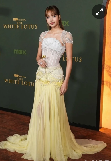 Lisa mặc váy có chất liệu xuyên thấu đính hạt cầu kỳ trong buổi ra mắt bộ phim "The White Lotus 3" được tổ chức tại Mỹ.