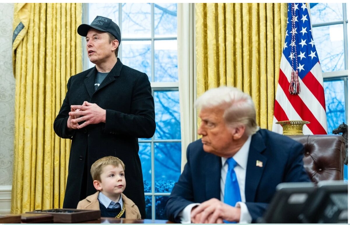 Khi đoàn quay phim và phóng viên chen chúc vào Phòng Bầu dục hôm 11/2, cố gắng tập trung vào những bình luận công khai đầu tiên của Tổng thống Donald Trump và Elon Musk về việc cắt giảm chi tiêu của chính phủ, thì cảnh quay ấn tượng này đôi khi đã bị "đánh cắp" bởi con trai 4 tuổi của Musk, "Lil X". Ảnh: The New York Times.