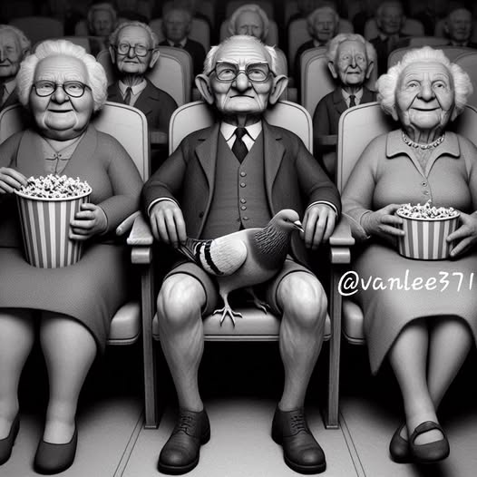 Không dễ dàng bỏ cuộc, ông lão nông dân đi vòng quanh góc, nhét chú bồ câu kín đáo vào quần của mình, kéo khóa lên, và quay lại mua vé. Ông vào rạp và tìm một chỗ ngồi ngay giữa hai bà lão tên là Bà Ba và Bà Năm.