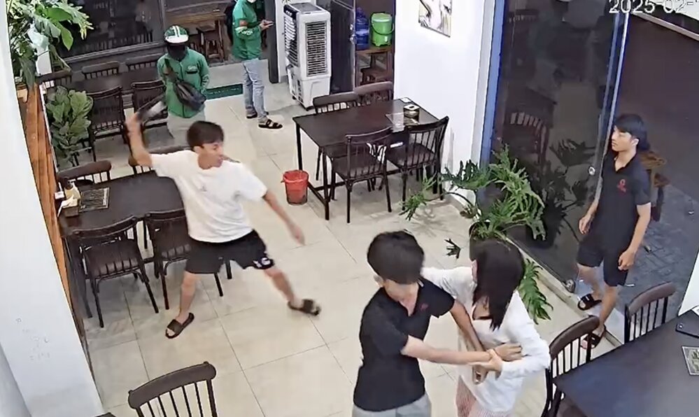 Lúc này, Phương cầm vật dụng trên bàn, ghế ném vào trong quán và cầm ly ném trúng đầu của A. Chưa dừng lại, Phương vào trong quán chửi bới, cầm vỏ chai rượu vang ném mạnh làm bể tấm kính cường lực của quán.