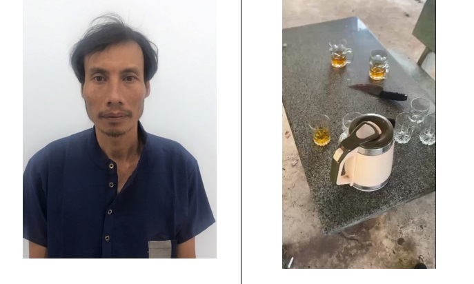 Nguyễn Hữu Nghĩa và con dao gây án (ảnh Cổng thông tin điện tử Công an tỉnh Bình Phước).