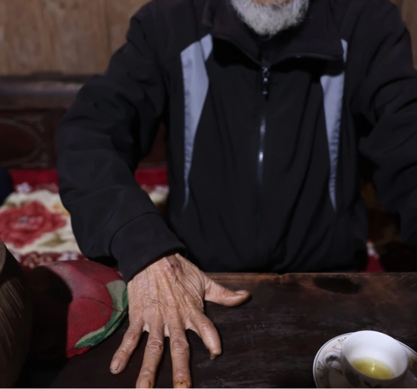 Ông Sử được mệnh danh là "bậc thầy" nuôi rắn cùng vết tích bị rắn cắn ở tay phải. Ảnh: Đức Hoàng