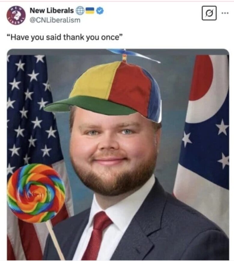 Meme về ông Vance với dòng chú thích: "Ông từng nói cảm ơn lần nào chưa?". Ảnh: X.