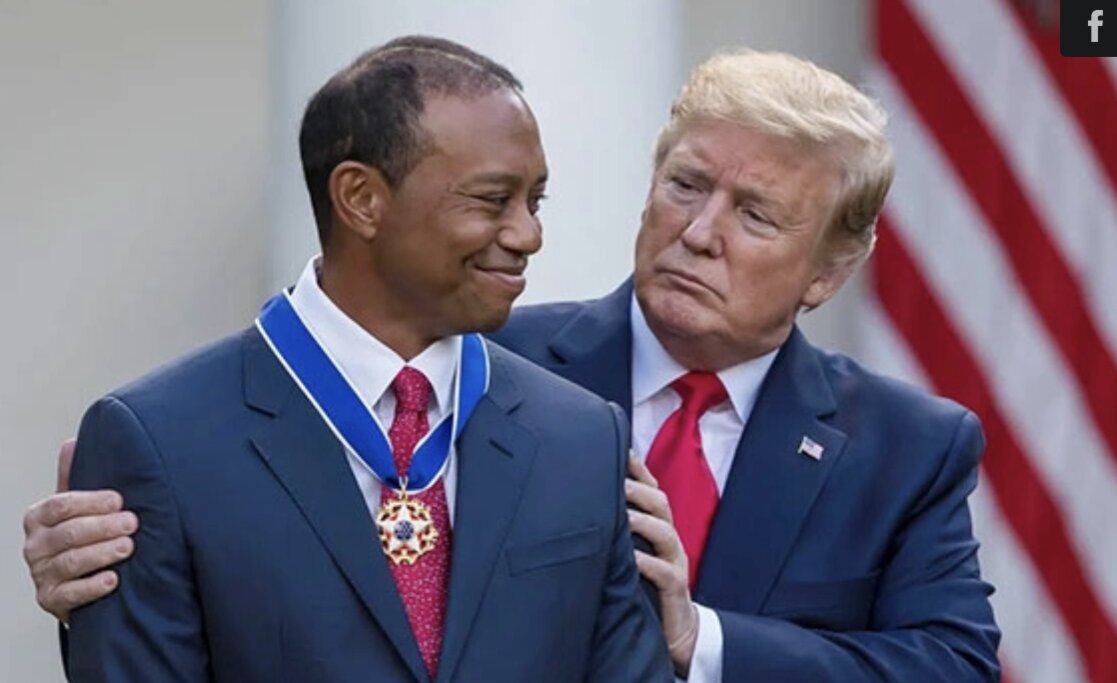 Sau màn trở lại ngoạn mục của Tiger Woods tại Masters ở Augusta National năm 2019, ông Trump đã nói chuyện với tay golf kỳ cựu và trao tặng anh Huân chương Tự do của Tổng thống. Huân chương này là một trong những vinh dự dân sự cao quý nhất của quốc gia.