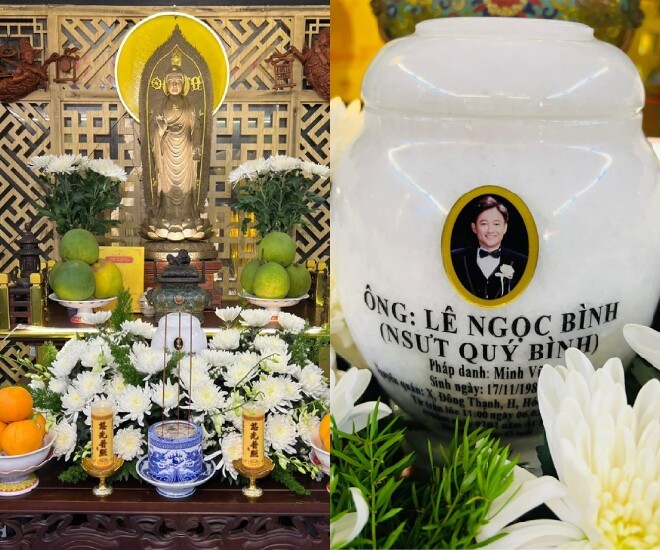Hiện tro cốt của Quý Bình đang được đặt tại chùa Đức Quang, sau 49 ngày sẽ rải xuống biển Cần Giờ theo đúng di nguyện của cố nghệ sĩ.