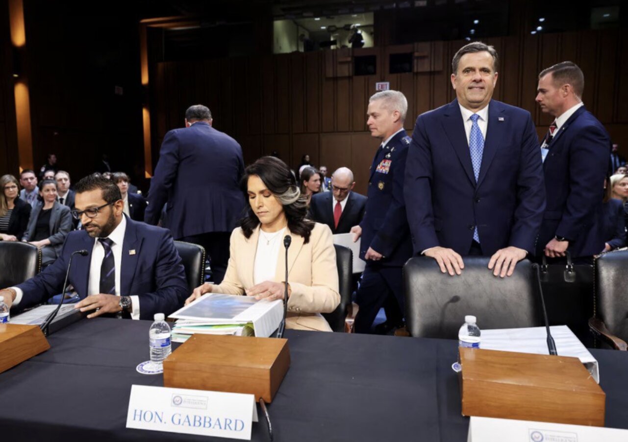 Giám đốc Tình báo Quốc gia Tulsi Gabbard và Giám đốc Cơ quan Tình báo Trung ương Mỹ (CIA) John Ratcliffe xuất hiện trong phiên điều trần ở Thượng viện ngày 25/3. Ảnh: Reuters.