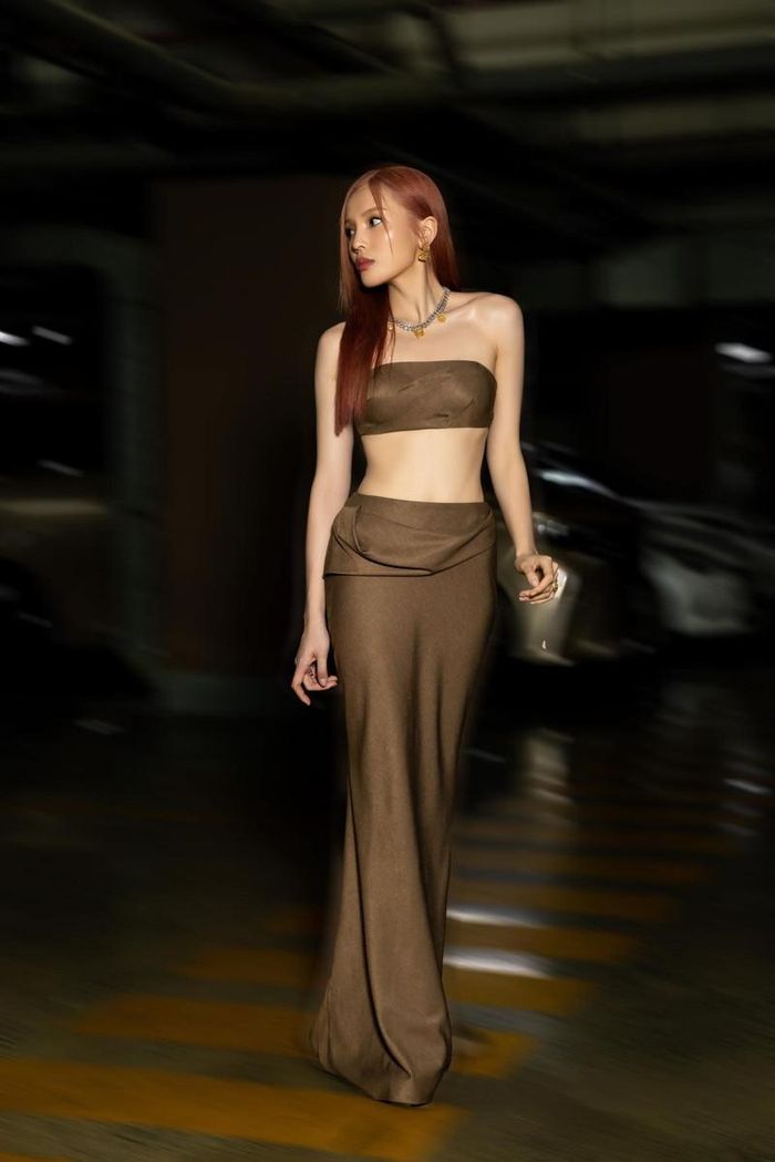 Một điểm đáng chú ý là cách cô lựa chọn các phụ kiện đi kèm, từ trang sức đến kiểu tóc, tất cả đều mang lại sự hài hòa cho tổng thể.