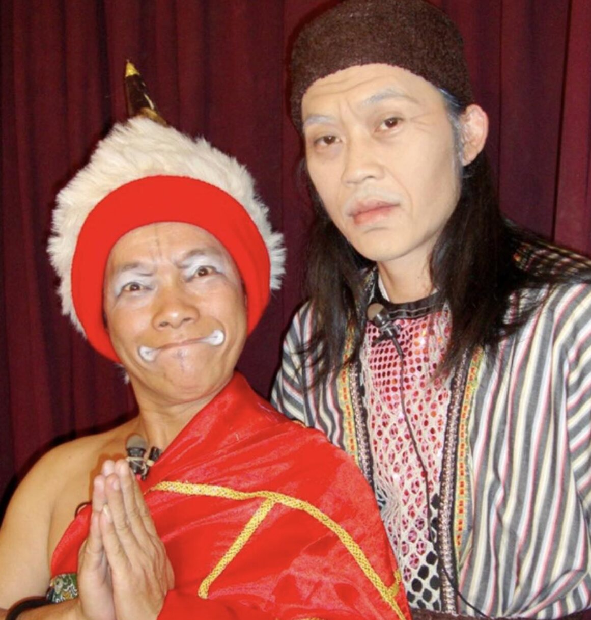 Nghệ sĩ hài Vũ Quang và NSƯT Hoài Linh trong vở "Máu nhuộm sân chùa"