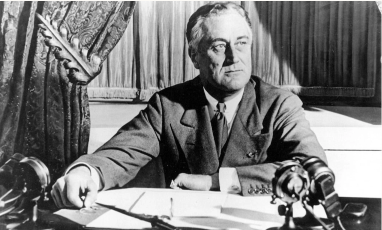 Tổng thống Franklin D. Roosevelt trong buổi trò chuyện "bên lò sưởi" đầu tiên trên đài phát thanh tại Washington vào năm 1933. Ảnh: AP