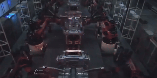 (Nhà máy hoạt động hoàn toàn trong bóng tối, trừ một vài tia lửa lóe lên khi hàn các linh kiện lại với nhau. Không phải v́ họ đang cố gắng cắt giảm hóa đơn tiền điện hàng quư, mà v́ không có "công nhân" nào trong nhà máy cần ánh sáng để nh́n. Nguồn: Weibo)