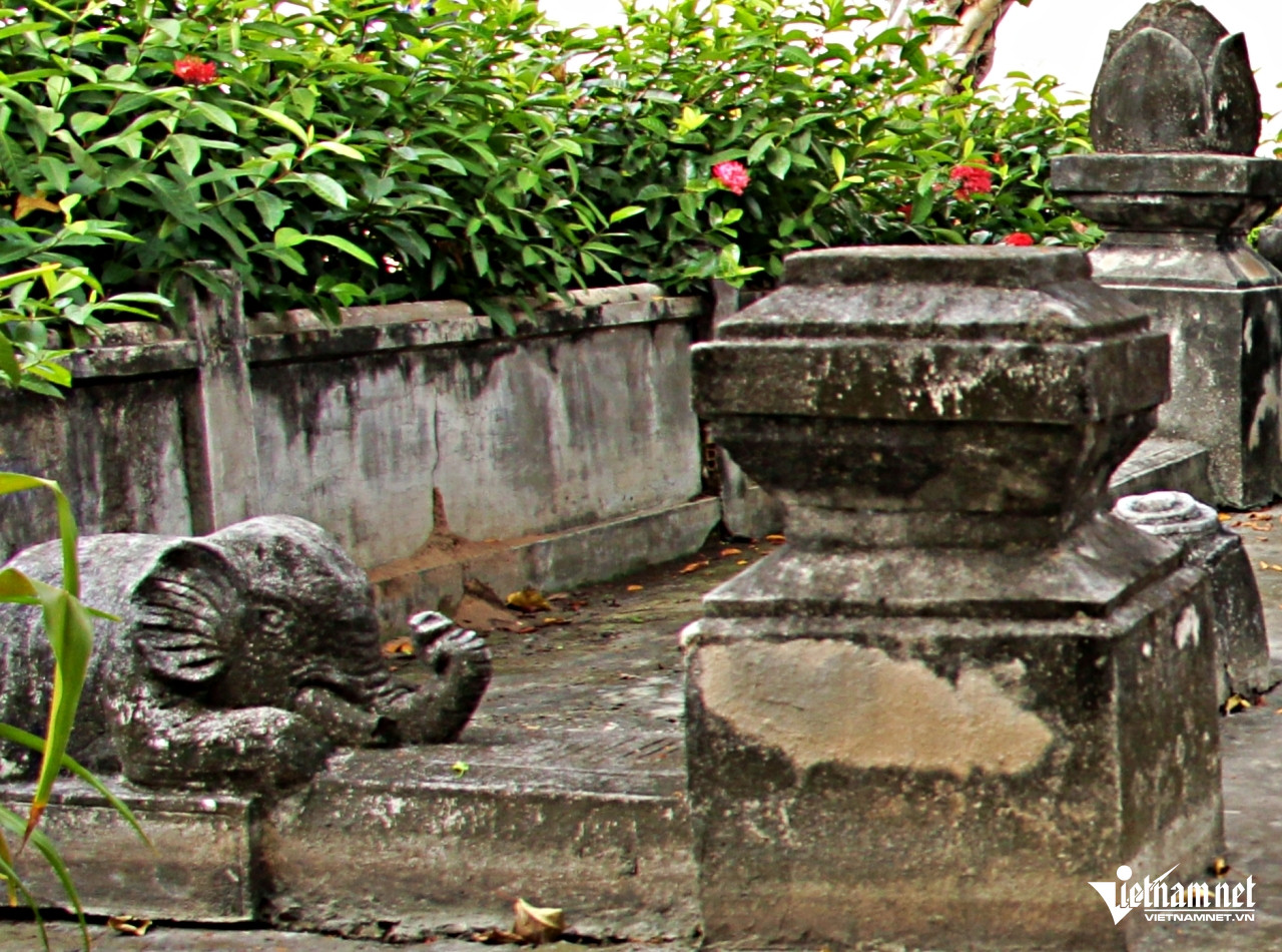 Tượng voi phục bên cột đá dẫn vào khuôn viên mộ. Ảnh: Hà Nguyễn