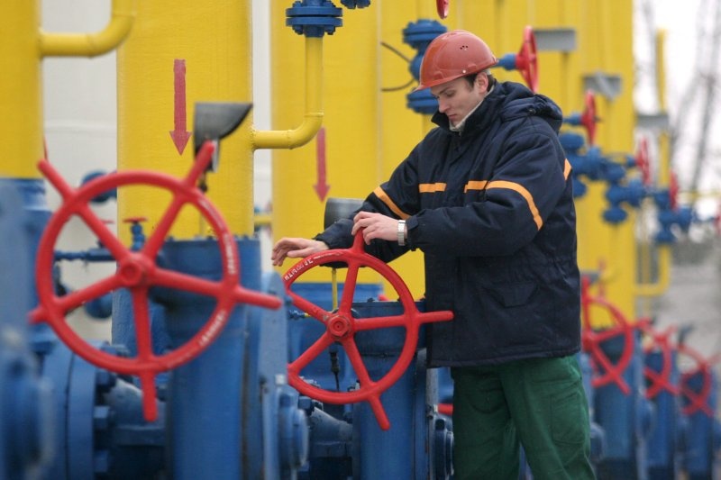 Công nhân vận hành đường ống dẫn khí đốt tại thị trấn Boyarka thuộc khu vực Kiev, Ukraine. (Ảnh: UPI)