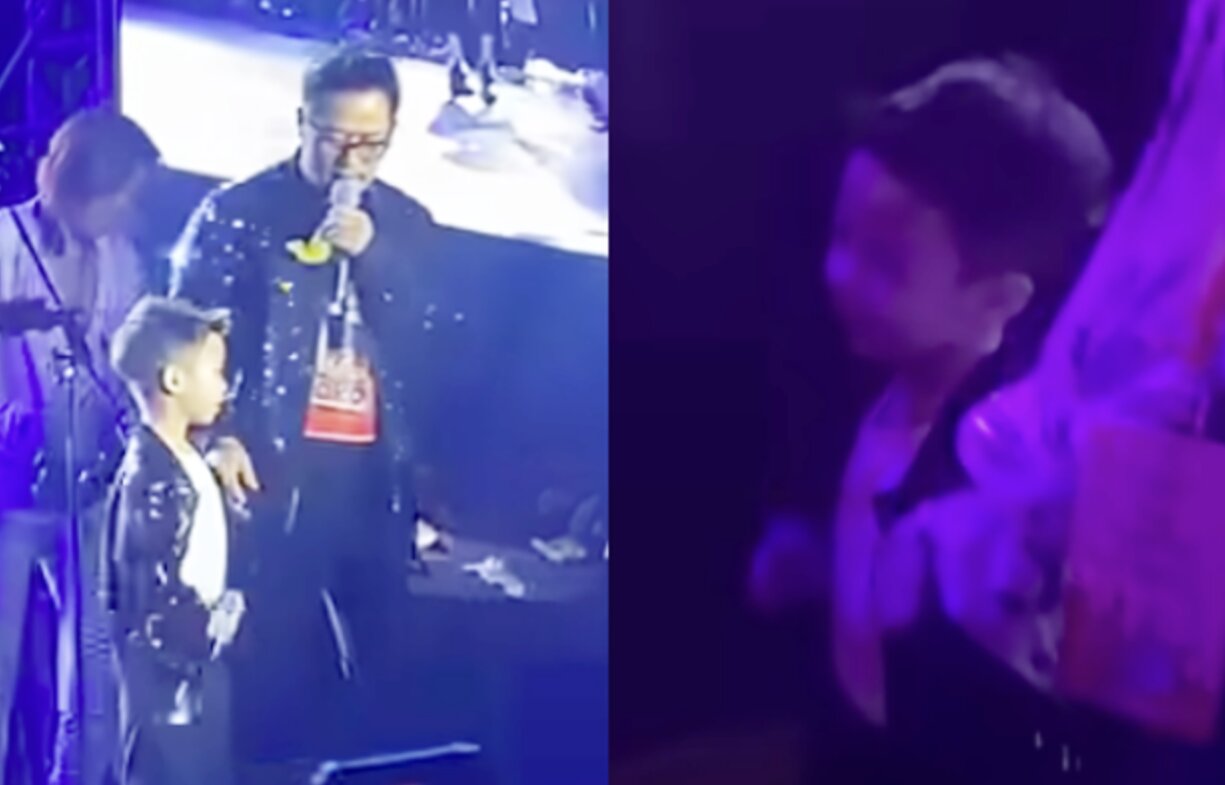 Đang hát "sung" cùng bố Bằng Kiều, con trai Benly của nam ca sĩ mặt bỗng ngẩn ngơ khi bị gọi rời khỏi sân khấu.