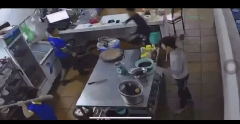 Không dừng lại, nhóm này lao thẳng vào đánh nhau tại quầy tính tiền, sau đó 1 đối tượng cầm dao xông tới chỗ nấu ăn đâm trúng vùng ngực một nhân viên quán làm nạn nhân gục tại chỗ.