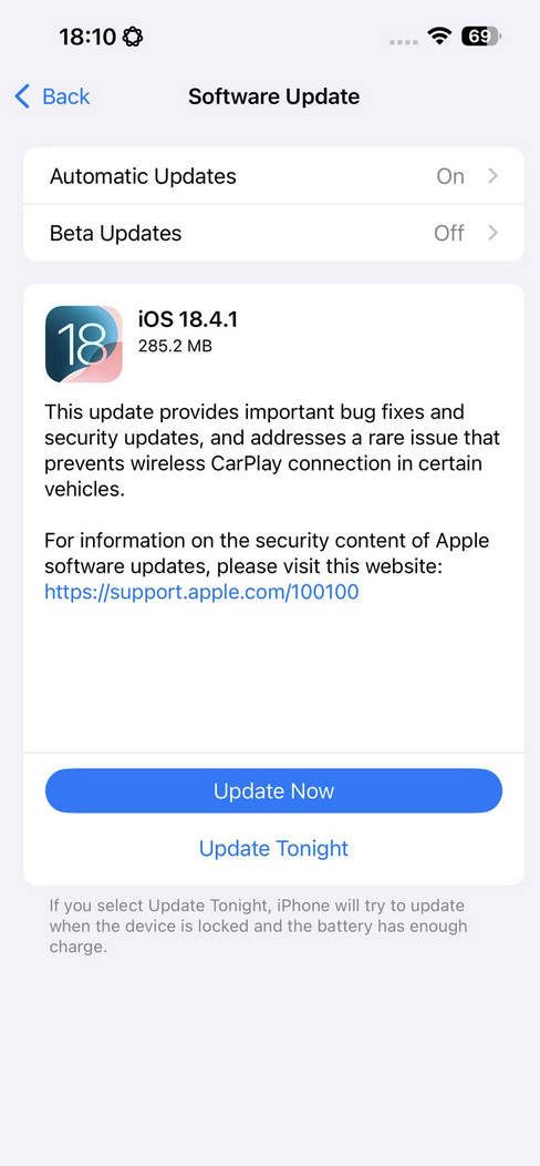 Ngoài hai bản vá bảo mật quan trọng, iOS 18.4.1 còn khắc phục sự cố khiến một số xe không thể sử dụng tính năng CarPlay không dây.