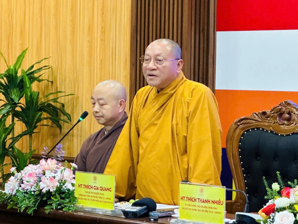 Hòa thượng Thích Gia Quang thông tin về Đại lễ Vesak LHQ 2025 tại họp báo. Ảnh: HTL
