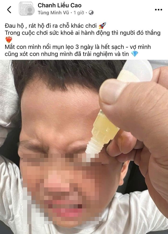 Một người đàn ông chia sẻ bài viết nhỏ nước cốt chanh vào mắt con để chữa lẹo mắt.