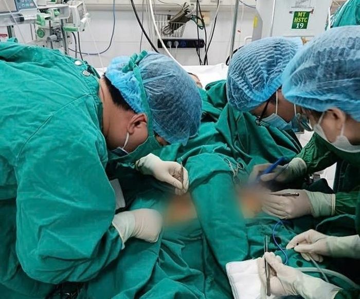 Bác sĩ tiến hành cấp cứu cho bệnh nhân. Ảnh: Trần Anh