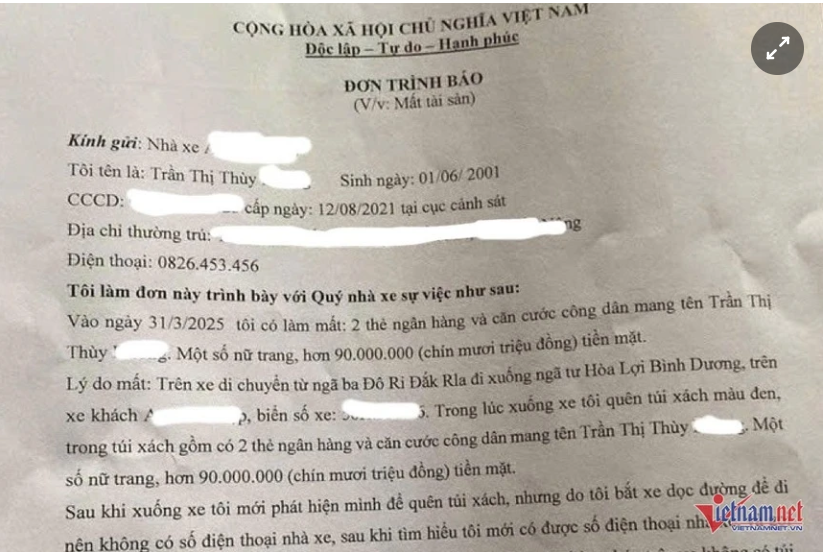 Sau đó, chị D. làm đơn gửi Sở Xây dựng Đắk Lắk, xin trích xuất camera hành trình của xe khách và phát hiện phụ xe tên Đ. đã lấy túi xách.