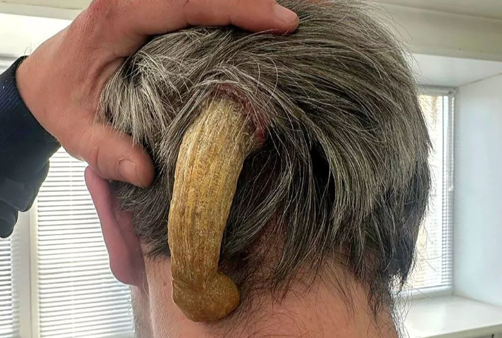 Một người đàn ông giấu tên, khoảng 30 tuổi, đến từ Nga đã phải chịu đựng cơn đau hành hạ suốt 3 năm do một chiếc sừng mọc ra ở phía sau đầu.