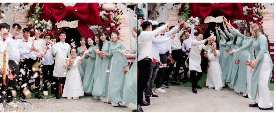 “Lúc đeo vàng cho tôi, anh Huệ run lắm. Tay anh run bần bật có lẽ vì hồi hộp, vui mừng và xúc động. Mẹ tôi thấy vậy thì nói đùa ‘sao run dữ vậy con? Lần đầu làm chuyện ấy hả?’ khiến mọi người phì cười”, Mi chia sẻ.