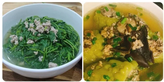 Canh rau má thịt bằm và mướp đắng nhồi thịt là hai món canh thanh nhiệt giải độc trong mùa hè rất tốt
