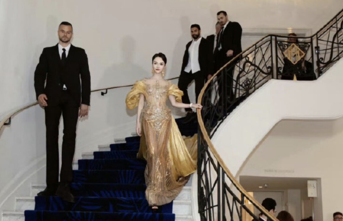 Hạng Lương Nguyệt gây bàn tán xôn xao khi đưa theo 4 vệ sĩ hộ tống cô trên thảm đỏ Cannes