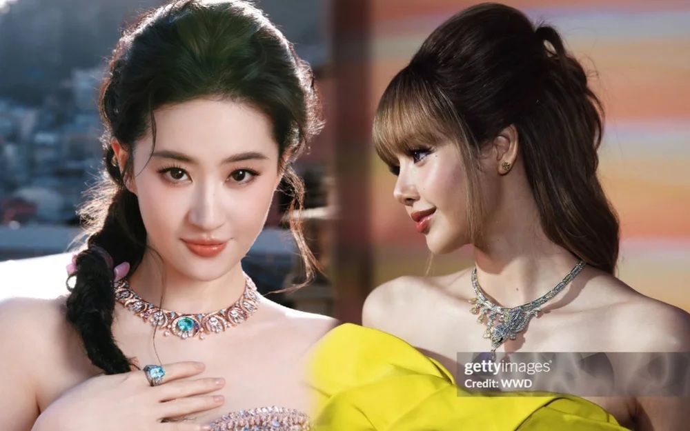Trái ngược với Lisa, Lưu Diệc Phi mang đến một hình ảnh ngọt ngào đúng chất “thần tiên tỷ tỷ”. Xuất hiện tại sự kiện, nữ diễn viên diện diện bộ haute couture đính đá quý từ thương hiệu Elie Saab, chiếc đầm cúp được đính kết cầu kỳ, ôm sát vóc dáng giúp tôn lên vòng eo thon cùng làn da trắng sứ nổi bật. Cô nàng chọn kiểu tóc búi cao cổ điển, trang điểm nhẹ nhàng với lớp nền trong veo. Bộ trang sức kim cương tinh xảo là điểm nhấn hoàn hảo cho tổng thể, mang đến cảm giác sang trọng nhưng không quá phô trương.